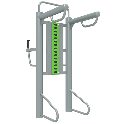 Станция TMX-L100 разработана с учётом требований доступной среды и позволяет людям с ограниченными возможностями проводить полноценные силовые и координационные тренировки на свежем воздухе. Конструкция включает параллельные брусья, рукоход, тренажёр для пресса и отжимания, а также платформу для балансировки — всё расположено таким образом, чтобы обеспечить удобный доступ с инвалидного кресла и возможность выполнения упражнений в положении стоя или сидя. Все элементы изготовлены из прочной оцинкованной профильной трубы, снабжены антивандальными заглушками и противоскользящими накладками. Благодаря порошковому покрытию станция устойчива к атмосферным воздействиям и не требует частого обслуживания. Инструкции по выполнению упражнений нанесены в виде пиктограмм рядом с каждым модулем, а QR-код на стойке открывает видеоролики с демонстрацией техники для пользователей и инструкторов.