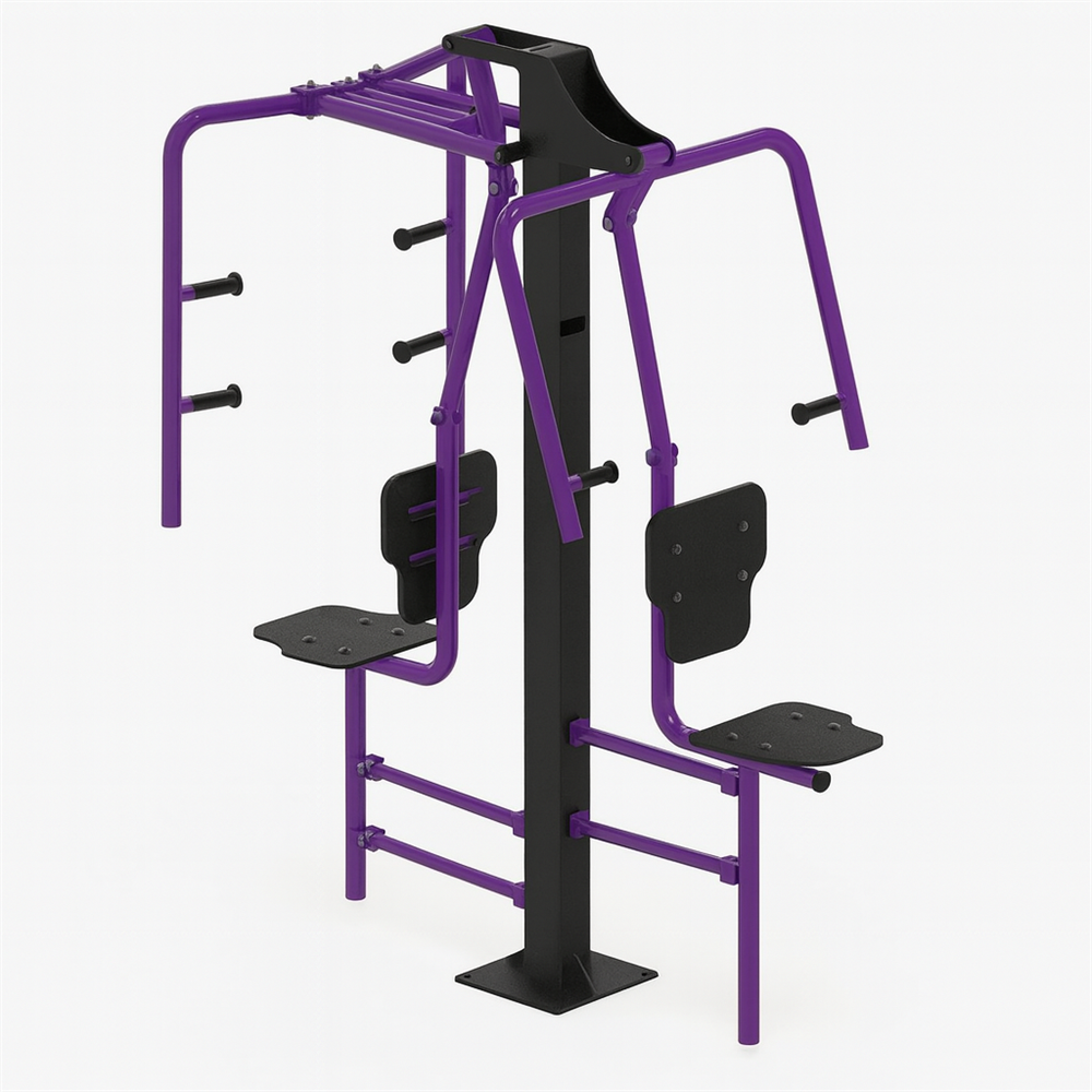 Силовой тренажёр 2-в-1, сочетающий два базовых упражнения для развития верхней части тела: жим от груди и сведение рук (баттерфляй). Подходит для тренировки силы, выносливости и улучшения осанки.