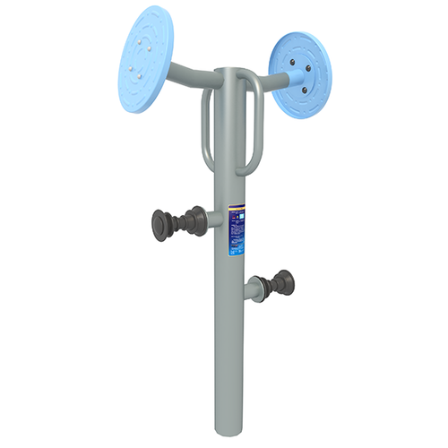 Уличный тренажёр МФР TMX-L59B предназначен для разработки и укрепления мышц рук, плечевого пояса и кистей. Две большие вращающиеся колеса и два малых рукоятки позволяют выполнять комплекс упражнений на сгибание-разгибание, круговые вращения и растяжку суставов в положении стоя или сидя. Конструкция легко интегрируется в любую уличную площадку благодаря универсальному анкерному креплению, а яркие детали выполняют функцию наглядных подсказок для пользователей.