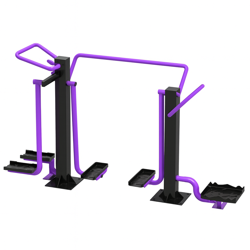 Многофункциональный тренажёр 3-в-1, сочетающий упражнения для растяжки, кардиотренировки и укрепления мышц живота. Подходит для комплексных занятий на свежем воздухе и рассчитан на одновременное использование несколькими людьми.