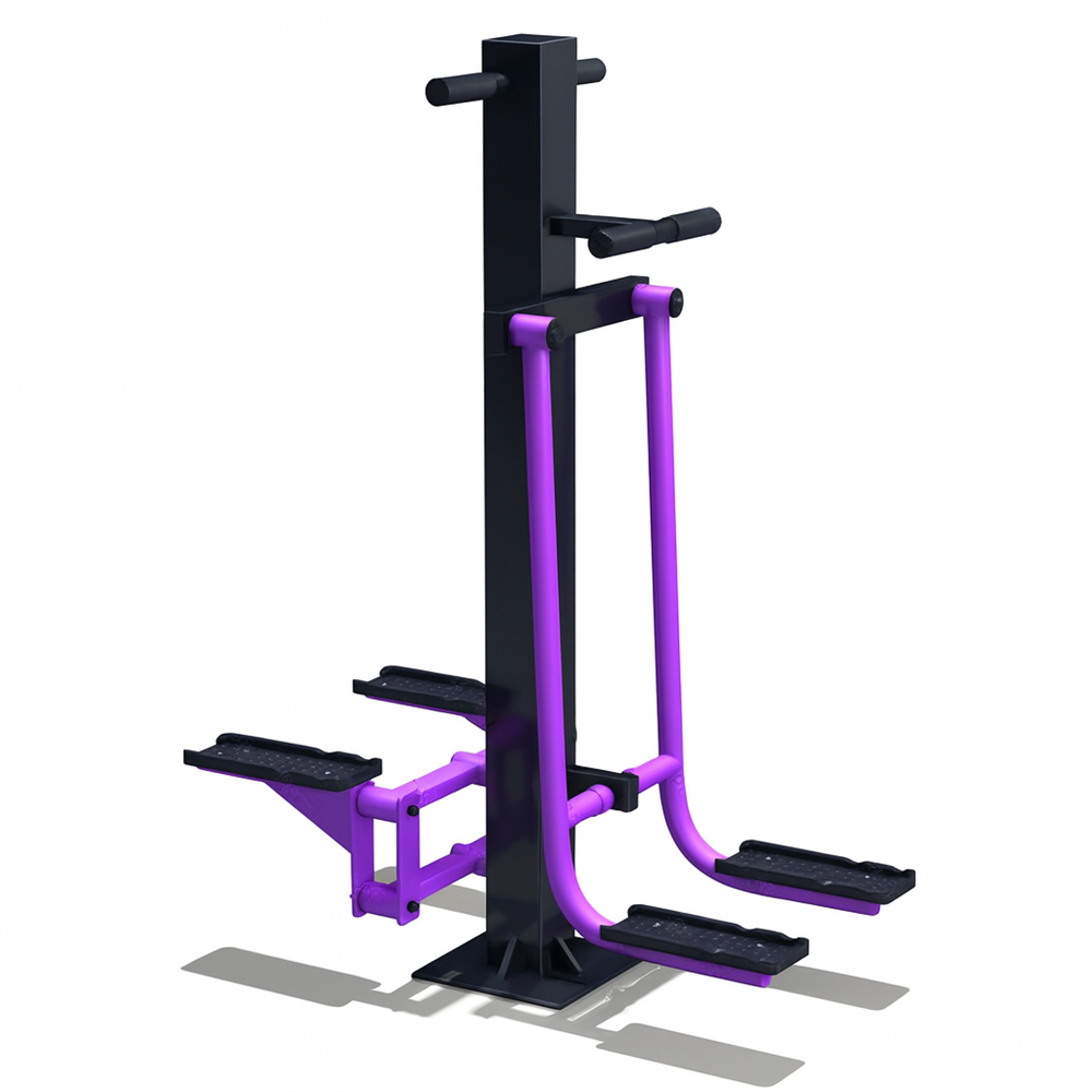 Функциональный тренажёр 2-в-1, объединяющий упражнения для развития гибкости и кардионагрузку. Сочетает платформы для растяжки и шпагата с динамическим степпером, имитирующим ходьбу по лестнице. Отличное решение для комплексных тренировок на свежем воздухе.