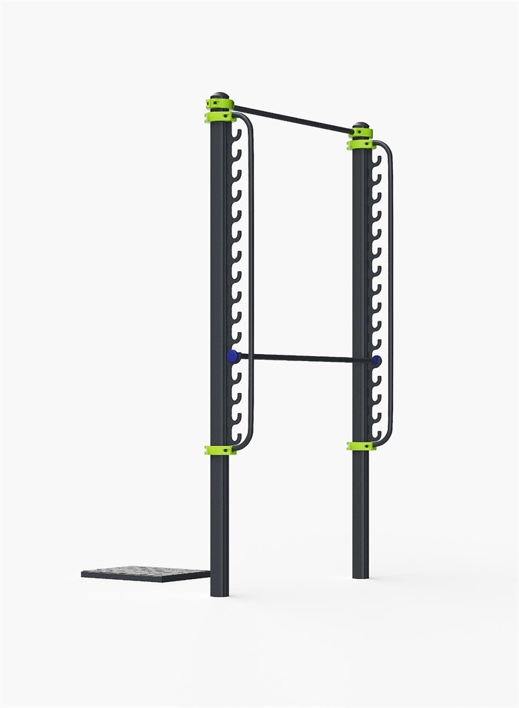 Оборудование предназначено для испытаний «Подтягивание из виса на высокой перекладине» и «Подтягивание из виса лежа на низкой перекладине с опорой для ног» для инвалидов и лиц с ограниченными возможностями. Комплекс состоит из двух вертикальных опорных столбов, двух контуров ограничителей, двух гребенок с упорами для фиксации перекладины, перекладины для соединения опорных столбов, мобильной перекладины и упора для ног.